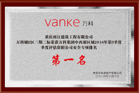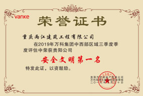 • 2019年万科集团中西部区域三季度评估安全文明第一名