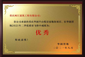 • 重庆华润半山悦景项目荣获华润置地集团2021年二季度质量飞检成绩优秀