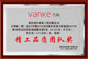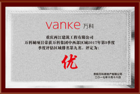 • 万科E区三期二标荣获万科集团中西部区域2017年3季度综合评估第一名